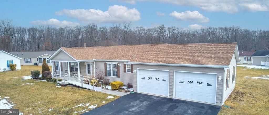 This lovely home features a bright, airy, open concept living space with a stunning stone fireplace in a spacious great room. The ample kitchen with plenty of cabinets, counter space, and newer appliances is sure to bring out your inner gourmet and the large adjoining dining room is the perfect spot for entertaining. Enjoy your morning coffee in the breakfast nook, soak up the sun on your private rear deck, relax with friends or a good book on the covered front porch. Three comfortable bedrooms and two full baths including the primary bedroom with tray ceiling and en-suite bath, soaking tub, double vanity and walk-in shower. The hall bath has been updated with a handicapped accessible roll-in shower. Other updates include: New Roof (2025), New Water Heater (2022) and New HVAC (2020). The oversized two car garage is great for parking cars or can be used as a work space for hobbies as well as extra storage and the exterior ramp offers ease of accessibility. Freshly painted and move-in ready this charming home is nestled in a quiet setting in Wild Meadows, Dover's premier 55+ active adult lifestyle community with easy access to shopping, restaurants, casinos, healthcare, hospital, Modern Maturity Center, YMCA , Rt. 1, and the Delaware Beaches! Amenities include: Community clubhouse, heated pool, exercise room, game room, party room, library, and lawn maintenance. Land Lease $817.83/month.