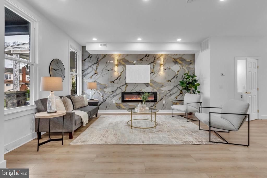 This beautifully rehabbed 4-bedroom, 2.5-bath rowhome offers the perfect blend of modern style and functional living. An open, light-filled floor plan showcases stunning flooring, recessed lighting, and high-end finishes throughout, including statement tile, floating shelves, stylish cabinetry, and two electric fireplaces. The kitchen features stainless steel appliances and flows seamlessly into the main living areas. Upstairs, spacious bedrooms are paired with an updated, spa-inspired bathroom, while the finished basement provides flexible space for a home office, guest room, or additional living area and a corresponding full bathroom. Recent updates include HVAC (2026), hot water heater (2026), windows (2026), flooring (2026), and roof (2026). This home has been beautifully updated. With a prime location near shopping, dining, and commuter routes.
