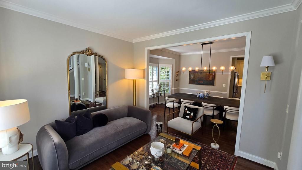 Beautifully updated 4BR/3.5BA Colonial with three finished levels, over 3100 sq feet and a 2-car garage in the highly sought-after Rivercrest community. An elegant two-story foyer opens to sun-filled living and dining rooms, both featuring bay windows, crown molding, and custom wood shutters. The main level and upper hallway showcase 5" wide plank dark oak hardwood floors, complemented by updated Craftsman-style staircase details, including new posts, railings, spindles, treads, and risers. The fully renovated kitchen is a standout, offering shaker-style cabinetry, Silestone Pietra quartz countertops, a spacious island, glazed subway tile backsplash, and new GE Profile stainless steel appliances, including a 5-burner gas convection range. A Bosch dishwasher with custom panel and a GE Profile beverage cooler complete the space. Just beyond, the extended family room provides a warm and inviting setting with hardwood flooring, wood shutters, and a cozy gas fireplace with a new slate surround. The primary suite features a soaring cathedral ceiling, an expanded walk-in closet, and a beautifully updated bath with dual quartz vanity, oversized frameless shower with river rock tile flooring, custom windows, and heated floors. Additional upper-level bedrooms are generously sized, including a flexible fourth bedroom ideal for a home office. Enjoy outdoor living with a large deck off the eat-in area, a screened porch on the lower level, and a spacious fenced backyard—perfect for entertaining. The walk-out lower level includes a recreation room, large den, full bath with quartz vanity, and ample storage space. Additional highlights main-level laundry room with LG washer and dryer and new cabinetry, and a powder room with hardwood floors. Exceptional attention to detail throughout with wood shutters and blinds, oil-rubbed bronze lighting and plumbing fixtures, updated hardware, a Hoshizaki nugget ice maker, and a SmartThings smart home system integrated with Amazon Alexa and Google Home. Enjoy Rivercrest’s wonderful amenities, including a community pool, walking trails, and tot lots.