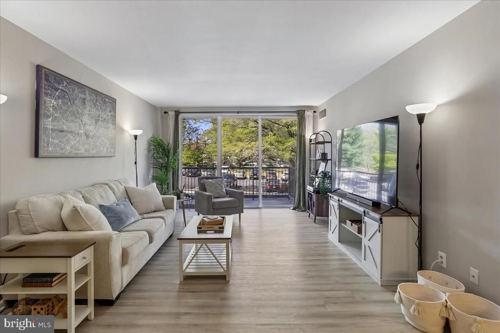 Bethesda’s best value just got even better at Whitehall - #211! This beautifully updated two-bedroom residence offers ample space, natural light, and thoughtful renovations, all tucked away on the quiet side of the building. It features a private balcony overlooking lush, tree-filled surroundings. As you step inside, you'll notice the updated flooring that flows seamlessly throughout the home, complemented by expansive living and dining areas filled with natural light from oversized sliding glass doors. The open, functional layout promotes effortless everyday living and is perfect for entertaining. The renovated kitchen boasts crisp white cabinetry for all your essentials, granite countertops, and stainless steel appliances, providing both style and practicality. Down the hall, two generous bedrooms offer flexibility for comfortable living or a work-from-home setup, with the spacious primary bedroom easily accommodating a king-sized bed. The bathroom has been tastefully refreshed, featuring ceramic tile, an upgraded vanity, and sleek black fixtures for a modern finish. Set on seven landscaped acres, Whitehall provides residents with amenities such as an outdoor pool, fitness center, concierge service, on-site management, and ample parking. It is ideally located near the Bethesda and Medical Center Metro stations, granting immediate access to shopping, dining, and grocery stores, including Room & Board, Anthropologie, the Apple Store, Madewell, Olazzo, Hip Flask Rooftop, Harris Teeter, and Trader Joe's. Residents also enjoy quick routes to Washington, D.C., Northern Virginia, and major commuter corridors. This is an exceptional opportunity for first-time buyers, investors, or anyone seeking a turnkey pied-à-terre in Bethesda!