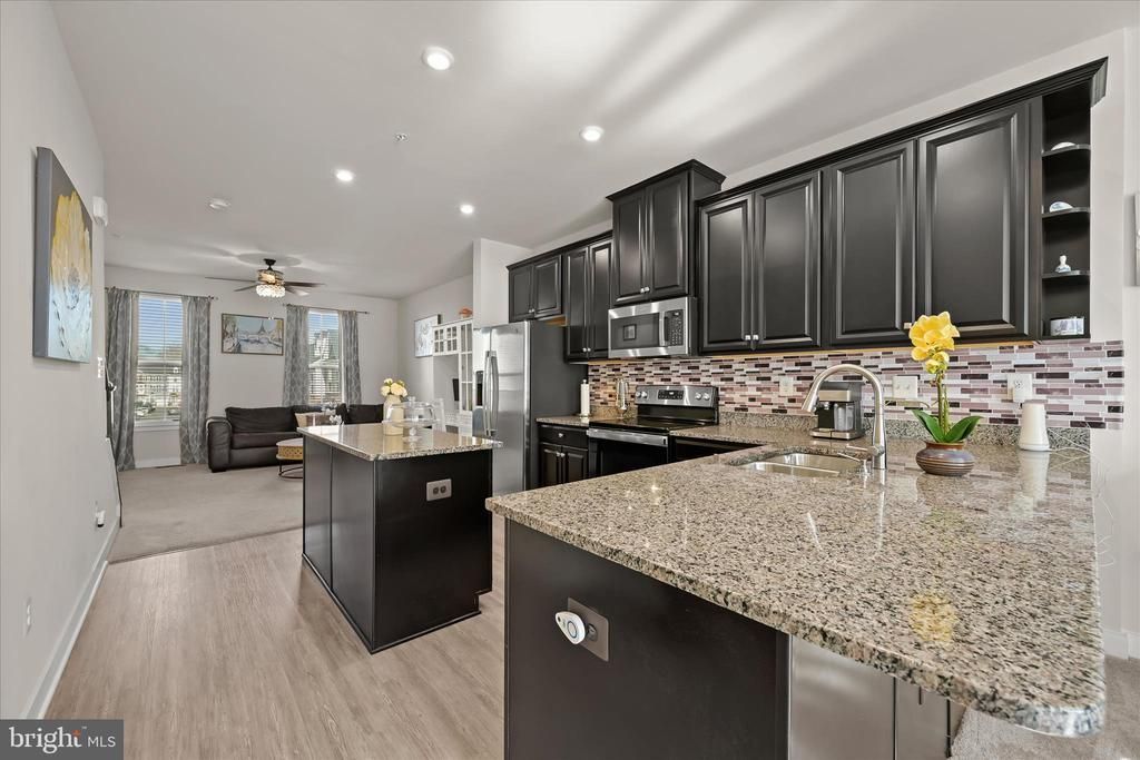 Blending modern construction with a highly functional layout and an unbeatable Elkridge location, this 2021-built garage townhome in the Elkridge Crossing community delivers three finished levels of versatile living designed for today’s lifestyle. Situated within the sought-after Howard County school district, this home offers the perfect combination of convenience and long-term value. A two-car garage provides ample parking and storage and is equipped with an EV charger, while the entry level leads into an open-concept main living area designed for both comfort and functionality. The kitchen is centrally positioned between the living and dining rooms, creating a natural flow for everyday living and entertaining. It features 42-inch cabinetry, stainless steel appliances, granite countertops, an island with breakfast bar seating, and luxury vinyl plank flooring. The dining room is filled with natural light and offers direct access to a composite deck through a sliding glass door, along with a nearby door to a conveniently located powder room. On the first upper level, the spacious primary bedroom includes an en-suite bath with a double sink vanity, tiled shower, and a walk-in closet. A second bedroom on this level also features its own en-suite bath, providing added privacy and flexibility. A laundry closet is thoughtfully placed on this same level for ease of use. The top floor includes a third bedroom with access to a full bath, along with a flex room that is not found in all homes within the community, offering additional space for work, fitness, or relaxation. Residents enjoy nearby access to Rockburn Branch Park with its trails, sports fields, playgrounds, and disc golf course, as well as community spaces like Waterloo Park featuring courts and paths. The area’s central positioning between Baltimore and Washington, D.C. allows for easy commuting via I-95 and Route 100, with additional nearby access to shopping, dining, and entertainment in Columbia and Hanover. Everyday conveniences, along with destinations such as Patapsco Valley State Park and BWI Airport further enhance the appeal, while community pathways connect directly to nearby elementary and middle schools. Offering modern finishes, flexible living spaces, and a highly convenient location, this home presents an ideal opportunity to enjoy comfort, functionality, and connectivity in one of Elkridge’s most accessible communities.