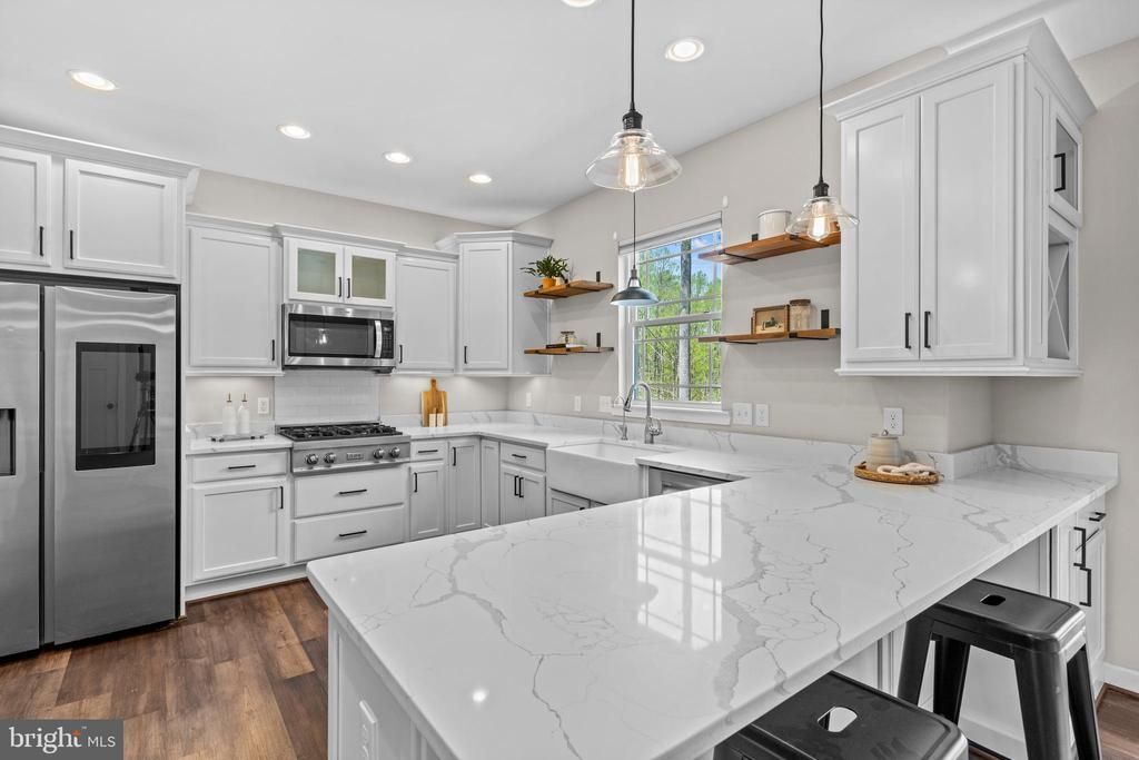 Welcome to 7195 Compass Court! Built in 2022 and thoughtfully customized, this stunning Colonial sits on 10 private acres and offers the perfect balance of luxury, functionality, and peaceful outdoor living. With 5 bedrooms, 4.5 bathrooms, and over 3,500 square feet, every detail has been carefully curated to enhance everyday living. Sunlight fills the open, airy layout, highlighting top-of-the-line flooring throughout the main level and a seamless flow between living spaces. At the heart of the home, the gourmet kitchen is both stylish and functional, featuring quartz countertops, custom soft-close cabinetry, a farmhouse sink, ZLINE propane range with double ovens, Samsung smart refrigerator, and a spacious walk-in pantry. A reverse osmosis system at the kitchen sink and a top-of-the-line whole house water purification system provide exceptional water quality throughout the home. The main level offers versatility and comfort. Other main level highlights include the dining room with wainscoting and custom woodwork, which could easily function as a home office, a spacious living room with a gas fireplace and stone surround, a laundry room, a half bath, and the main-level primary suite. The suite is generously sized and features a walk-in closet and an ensuite bath with a walk-in shower, garden-style soaking tub with chandelier above, and a double vanity. Upstairs are three additional bedrooms and two full bathrooms, including one bedroom with its own ensuite bath, offering the flexibility of a second primary suite if desired. The fully finished basement expands the home’s functionality, offering an additional bedroom, a full bathroom, a dedicated office, a flex room, and a wet bar, making it ideal for entertaining, extended stays, or flexible living arrangements. Basement finishes include a mix of LVP, tile, and carpet flooring with quartz countertops at the bar area. The home is on its own well and septic set-up. Step outside to experience the true standout feature of this property. The 10-acre setting offers privacy and usability, with trails already cut through the land and plenty of open space and fresh air to hit golf balls, ride ATVs or four-wheelers, and enjoy the outdoors year-round. The outdoor living space has been thoughtfully enhanced with stamped concrete hardscaping, a custom firepit area, and a built-in smoker and grill setup, creating the perfect environment for entertaining or relaxing. From the property, enjoy easy access down to the waterfront community, where you can take advantage of private beach access, private boat ramp, fishing, marina access, tennis and basketball courts, and dining at Tim’s II, delivering a lifestyle that blends acreage living with waterfront amenities. This location also offers convenient access to Fairview Beach, a community boat landing, tennis courts, basketball courts, and more. Additional upgrades include a hot water heater replaced in 2024, a new dishwasher installed in 2025, a professionally installed Starlink internet system, and custom window treatments throughout, including light-filtering and blackout options in the bedrooms. Located in the desirable Potomac Landing community, this home also offers convenient access to Fredericksburg, I-95, VRE, and Dahlgren, with shopping and dining just minutes away. This home offers a rare combination of modern construction, high-end upgrades, usable acreage, and lifestyle-driven amenities, all in a peaceful, private setting.
